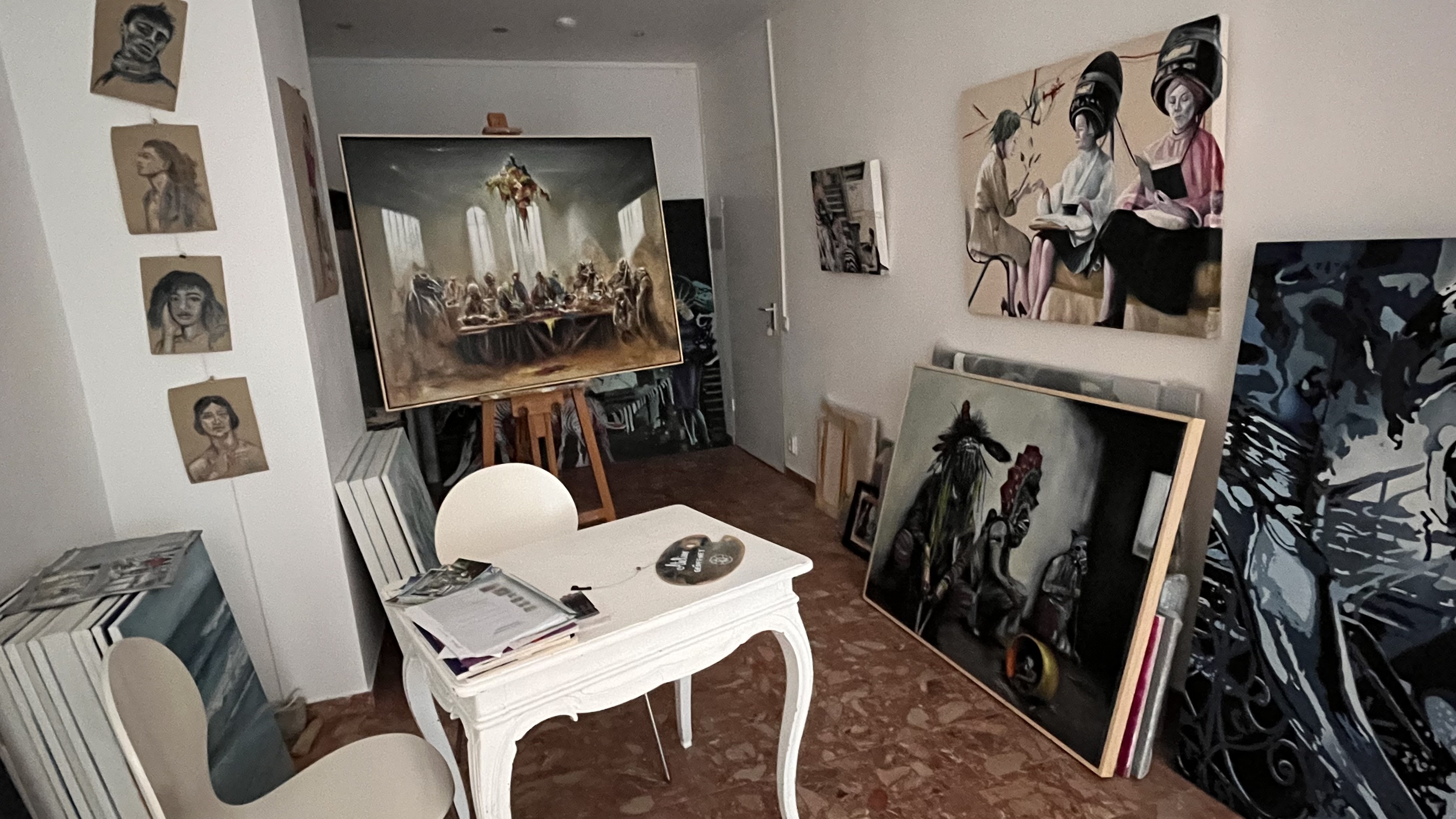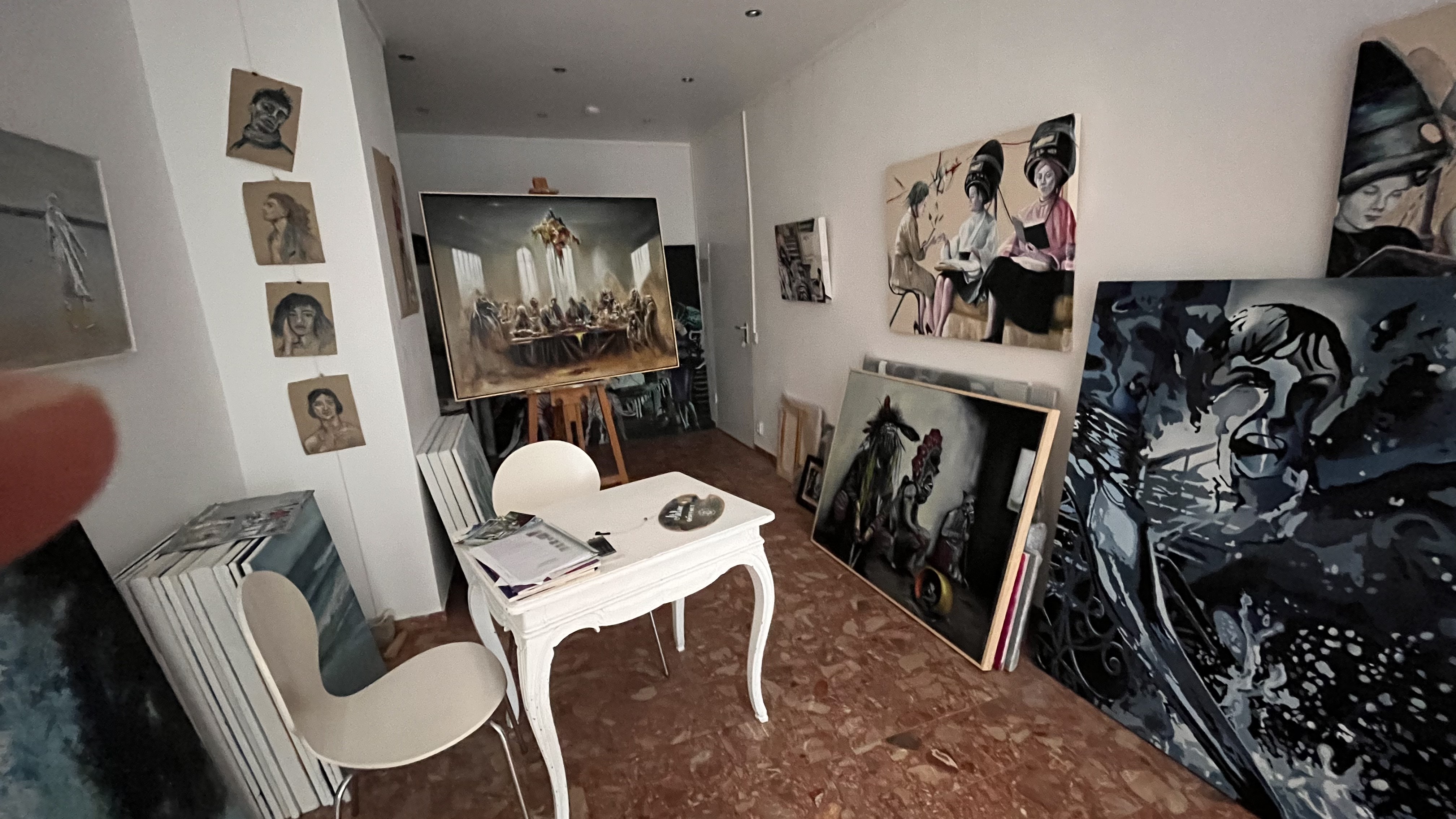 Die Atmosphäre im Bodenseeatelier ist geprägt von konzentriertem Arbeiten, kreativer Unordnung, stillem Beobachten und lebendigem Austausch. Die Bilder geben einen Einblick in die Räume, das Licht, die Materialien – und manchmal auch in die Menschen dahinter.